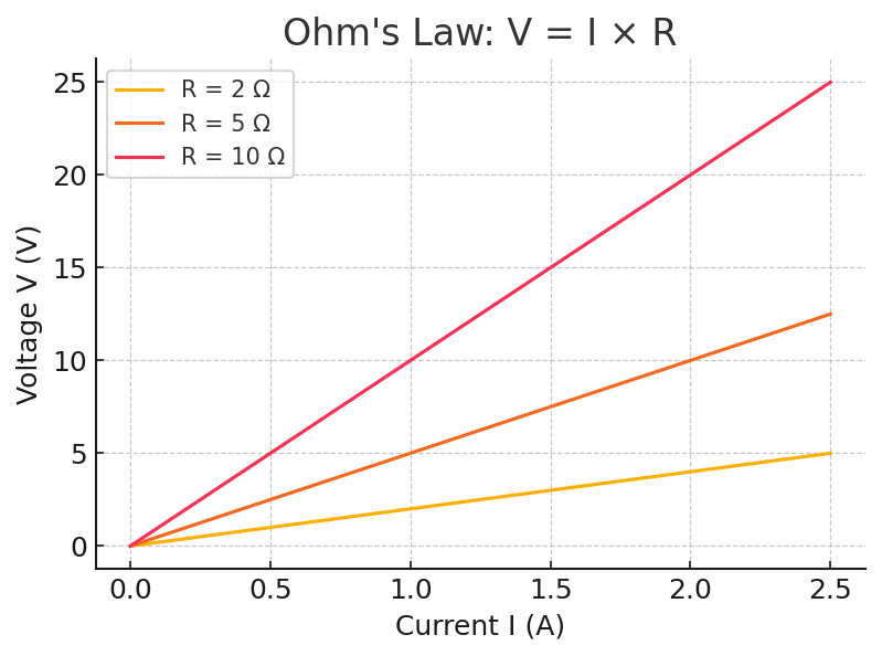 Định luật Ohm mô tả mối quan hệ giữa điện áp (V), dòng điện (I) và điện trở (R). Nó cho biết rằng dòng điện trong một mạch tỉ lệ thuận với điện áp và tỉ lệ nghịch với điện trở. Đây là nền tảng của mọi phép tính mạch điện.